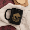 Featuring the bold Paleo Pulse logo in golden ink on a sleek black ceramic mug, it’s the perfect companion for your bone broth, mushroom coffee, or herbal tea ritual.